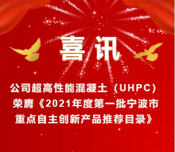 喜訊!公司超高性能混凝土(UHPC)榮膺《2021年度第一批寧波市重點自主創新產品推薦目錄》